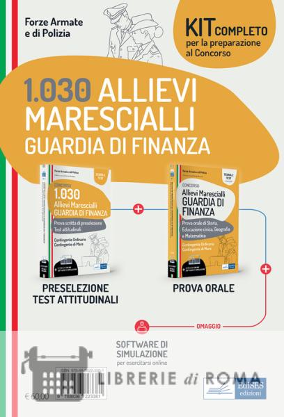 Il pacchetto di volumi si pone come utile strumento di studio per quanti si apprestano alla preparazione alle prove del Concorso per 1.030 Allievi Marescialli Guardia di finanza. Il kit contiene sia il manuale per la preparazione completa alla prova scritta di preselezione e ai test attitudinali sia il volume specifico per la prova orale di storia, educazione civica, geografia, matematica. I volumi sono inoltre corredati da un software accessibile online, per effettuare simulazioni delle prove.