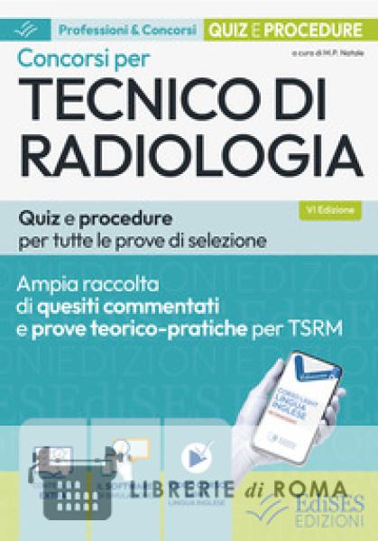Quiz e procedure per tutte le prove di selezione dei concorsi per Tecnico di radiologia (TSRM). Il testo, dopo una prima parte introduttiva sui criteri per l'accesso alla professione e sui concorsi pubblici, comprende: quesiti a risposta multipla commentati sulle tecniche di radiologia medica, suddivisi per argomento; prove pratiche, basate su specifiche procedure diagnostiche di cui si chiede la ricostruzione, commentate nel dettaglio; esercitazioni e simulazioni d'esame sull'intero programma; quesiti sulle competenze linguistiche (inglese) e informatiche. Il volume si articola nelle seguenti aree: Legislazione e organizzazione sanitaria; Legislazione e normativa professionale; Management sanitario; Radiologia; Tomografia computerizzata; Risonanza magnetica; Radioterapia; Medicina nucleare; Ecografia; Senologia; Radiologia pediatrica; Informatica radiologica di base; Radiologia interventistica; Emodinamica.
