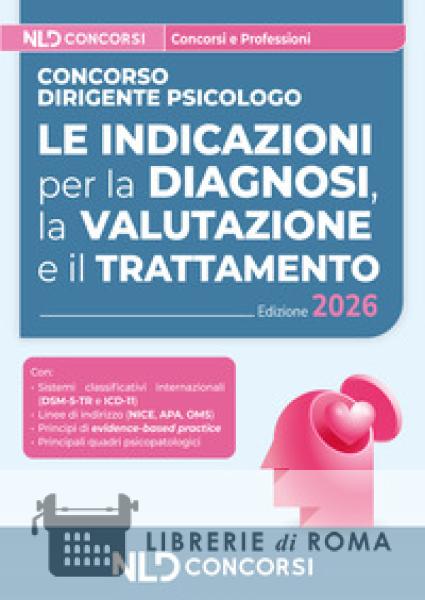 Manuale pensato per il concorso di Dirigente psicologo. Il volume Concorso Dirigente Psicologo. Le indicazioni per la diagnosi, la valutazione e il trattamento, NLD Concorsi, offre una guida organica, aggiornata e di immediata applicabilità per l'inquadramento e la gestione dei principali disturbi psicopatologici lungo tutto il ciclo di vita. Pensato in primo luogo per i candidati ai concorsi dell'area psicologica e sanitaria, con particolare riferimento al profilo di Dirigente Psicologo, il Volume rappresenta anche un valido supporto per i professionisti che operano nei servizi di salute mentale e socio-sanitari. La trattazione si fonda sui più recenti sistemi classificativi internazionali (DSM-5-TR e ICD-11) e sulle linee di indirizzo di organismi quali NICE, APA e OMS, integrando in modo coerente i livelli diagnostico, valutativo, terapeutico e organizzativo, nel rispetto dei principi di evidence-based practice e di governo clinico. Il Volume analizza in maniera sistematica i principali quadri psicopatologici - dai disturbi di personalità ai disturbi dell'umore, dai disturbi d'ansia e correlati a eventi traumatici alle psicosi, dai disturbi del comportamento alimentare alle dipendenze, fino ai disturbi del neurosviluppo e alla psicopatologia dell'età evolutiva, perinatale e geriatrica - dedicando specifica attenzione anche alla gestione del rischio suicidario, dell'autolesionismo e dell'aggressività. Ampio spazio è riservato ai percorsi di cura nei Dipartimenti di Salute Mentale, alla presa in carico precoce, alla gestione delle fasi acute e ai trattamenti continuativi, rendendo il testo uno strumento completo ed efficace sia per la preparazione concorsuale sia per la pratica clinica quotidiana. Completano il percorso di preparazione al Concorso per Dirigente Psicologo i seguenti volumi: Manuale di Teoria e quiz; La psicologia nel SSN: normativa, linee guida e prassi; Esercitazioni e simulazioni delle prove.