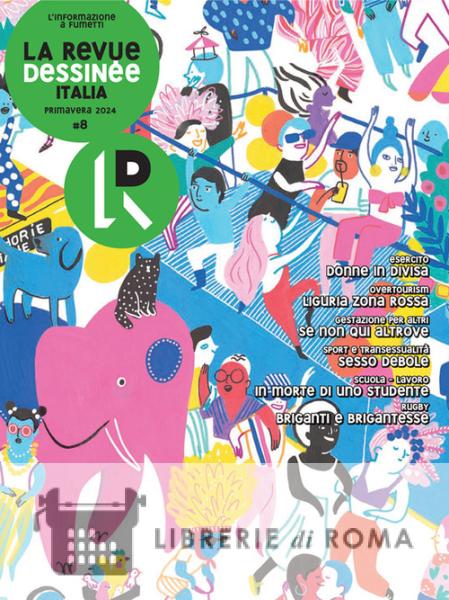Il numero 8 de La Revue Dessinée Italia, la prima rivista di giornalismo a fumetti in Italia. Indipendente e senza pubblicità. Copertina di Camille De Cussac. In questo numero: Esercito Donne in divisa di Elena Paparelli & Alice Milani; Overtourism Liguria zona rossa di Sarah Gainsforth & Giovanni Gastaldi; Gestazione per altri Se non qui, altrove di Rossella Anitori, Darel Iaffaldano Di gregorio & Benedetta C. Vialli; Sport e transessualità Il sesso debole, di Federico Vergari & Emanuele Rosso; Scuola - Lavoro In morte di uno studente, di Marco De Vidi & Diego Miedo; Rugby Briganti e brigantesse di Marta Bellingreri & Arianna Lentini; Giornaliste Sotto minaccia, di Morgan Large, Inès Léraud, Hélène Servel & Laëtitia Rouxel.