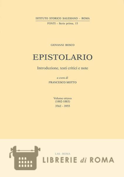 Questo ottavo volume dell'epistolario di don Bosco raccoglie 394 lettere da lui scritte o sottoscritte nel biennio 1882-1883. Molte risultano sconosciute sia alle Memorie Biogra?che, sia all'Epistolario curato da don Ceria; altre poi potranno sempre emergere da qualche archivio pubblico e privato, soprattutto di famiglie nobili. Quasi un centinaio sono quelle in lingua francese, due in spagnolo (1883) e quattro in latino (1882). Alle 394 lettere qui elencate in ordine cronologico vanno poi aggiunte le 21 lettere attestate, ma di cui si conosce solo sommariamente il contenuto (Appendice).