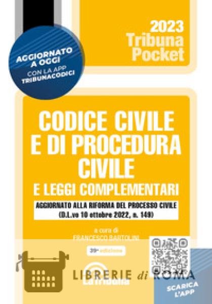 Quest'Opera fornisce ai lettori il testo aggiornato del Codice civile, del Codice di procedura civile e delle principali leggi complementari. La selezione delle leggi complementari comprende materie fra le quali segnaliamo: Fallimento e crisi di impresa; Lavoro; Locazioni; Matrimonio; Mediazione; Negoziazione assistita; Semplificazione dei riti civili; Tribunale delle imprese. Questa edizione è aggiornata ai due decreti legislativi, di attuazione della legge delega di riforma del processo civile (D.L.vo 10 ottobre 2022, n. 149) e dell'Ufficio per il processo (D.L.vo 10 ottobre 2022, n. 151). La riforma interviene sull'intero processo civile: dal procedimento di primo grado al giudizio di appello e di Cassazione, al processo del lavoro, ai procedimenti di esecuzione forzata, alle procedure di mediazione, di negoziazione assistita e di arbitrato fino ai procedimenti in materia di stato delle persone, minorenni e famiglie. Vengono altresì introdotte nuove norme sull'Ufficio per il processo, a sostegno degli uffici giurisdizionali civili. La Tribuna offre la possibilità di ricevere ogni giorno tutti gli aggiornamenti normativi che riguardano questo Codice. Infatti è attiva un'apposita App che permetterà di essere costantemente aggiornati.