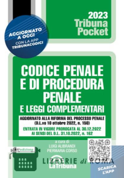 Quest'Opera è accompagnata da un apparato essenziale di annotazioni, e si conferma - per il formato pratico e maneggevole - quale fondamentale strumento pratico per lo studio e il lavoro degli operatori del settore. La selezione delle norme complementari comprende materie fra le quali: Cittadini extracomunitari; Depenalizzazione; Indulto; Misure di prevenzione e antimafia; Ordinamento penitenziario; Violazioni finanziarie. Questa edizione è aggiornata al decreto legislativo 10 ottobre 2022, n.150 di attuazione della legge delega di riforma del processo penale (c.d. riforma Cartabia). La riforma interviene sull'intero processo penale: dalle indagini preliminari, al dibattimento, ai riti alternativi, al processo in absentia, ai giudizi di impugnazione, alle notificazioni, all'esecuzione penale, alla procedibilità a querela, alle norme sulla giustizia riparativa. La Tribuna offre la possibilità di ricevere ogni giorno tutti gli aggiornamenti normativi che riguardano questo Codice. Infatti, è attiva un'apposita App che permette di essere costantemente aggiornati.