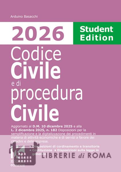 Librerie di Roma | Codice civile e di procedura civile 2026. Student edition. Aggiornato al D.M. 10 dicembre 2025 e alla L. 2 dicembre 2025, n. 182 per la semplificazione e la digitalizzazione dei pr