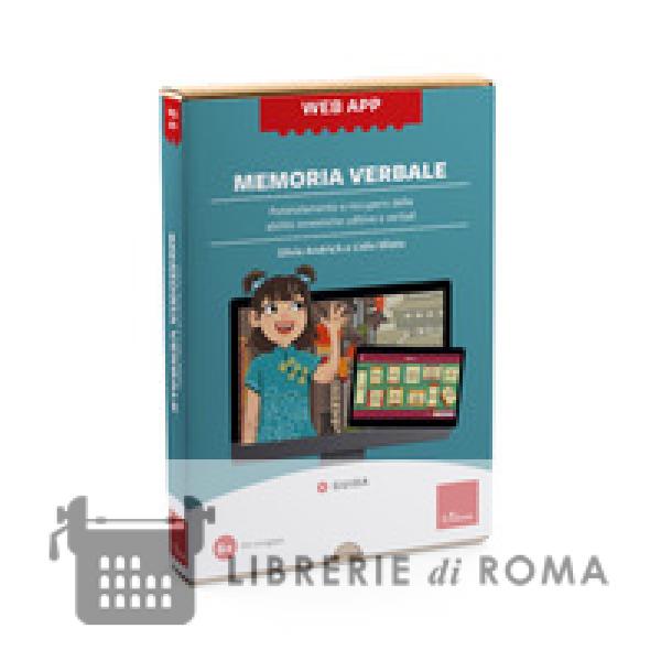 Questa web app, adatta a bambini/e e adulti con problemi di memoria verbale a breve e lungo termine, presenta una serie di divertenti attività digitali per potenziare le abilità mnestiche, uditive e verbali. Attraverso l'inserimento di strategie di memorizzazione, il programma diventa non solo cognitivo ma anche metacognitivo. La web app presenta una serie di divertenti giochi e attività in formato digitale, e suddivise in 11 aree di lavoro corrispondenti a diversi tipi di memoria verbale, per potenziare le abilità mnestiche uditive e verbali di bambini, bambine e adulti con problemi di memoria verbale a breve e lungo termine. Web app. La web app si articola in 11 aree di lavoro e permetto a psicologi, educatori, insegnanti e genitori di ottenere un profilo del soggetto nell'ambito delle abilità mnestiche coinvolte e di identificare rapidamente i punti di forza e di debolezza con la registrazione dei risultati delle singole prove. La guida. Una guida pronta all'uso dei contenuti e delle funzionalità della web app. Dopo un'introduzione teorica sulla memoria, e in particolare sulla memoria verbale, accompagna all'utilizzo della web app con affondi sulle 11 sezioni proposte. Requisiti di sistema. La web app si può utilizzare su computer, tablet e LIM con i browser più diffusi. Per usare la web app, la connessione a Internet dev'essere attiva.