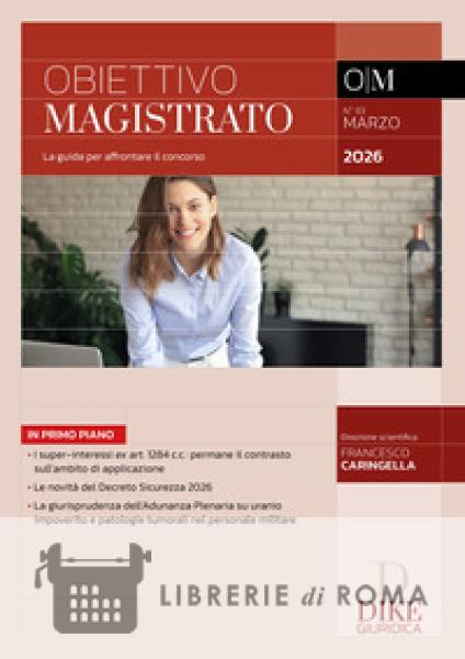 In questo numero della rivista "Obiettivo Magistrato" numero 93 di Marzo 2026: I super-interessi ex art. 1284 c.c. permane il contrasto sull'ambito di applicazione. Le novità del Decreto Sicurezza 2026. La giurisprudenza dell'Adunanza Plenaria su uranio impoverito e patologie tumorali nel personale militare. Ogni concorsista, all'inizio della lunga traversata del deserto che separa la laurea dall'accesso al mondo del lavoro, si è trovato di fronte alla domanda fatidica: quale rivista mi serve per superare il concorso in magistratura? "Obiettivo Magistrato" risponde, in modo netto e preciso, a questo interrogativo. È un prodotto editoriale di nuova generazione, una rivista di scopo, concepita per fare il punto, nei mesi che separano il bando dalle prove scritte, su tutti gli argomenti che possono essere oggetto d'esame. Il progetto editoriale risponde, allora, per ognuna delle tre materie delle prove scritte, a tre bisogni fondamentali: la guida ragionata allo studio, attraverso l'analisi degli istituti fondamentali e attuali; il monitoraggio, con ricchissimi osservatori, delle sentenze più recenti e significative; l'apprendimento di una buona tecnica di redazione degli elaborati, con numerosi esercizi (compiti e schemi) e tracce svolte. L'avventura che attende l'aspirante magistrato è lunga e faticosa, ma anche e soprattutto appassionante. Vogliamo condurre per mano ciascun concorsista fino alle fatidiche giornate delle prove scritte, vivendo insieme questo momento, con gioia e incoscienza.