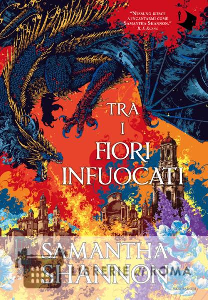 Situato cronologicamente a metà tra gli eventi narrati in Un giorno di notte cadente e quelli del Priorato dell'Albero delle Arance, Tra i fiori infuocati è una potente storia di resilienza e coraggio: il primo passo verso la leggenda. Sono passati secoli da quando l'Armata Draconica si è alzata in volo e l'umanità ha rischiato l'estinzione. Marosa Vetalda vive da prigioniera in casa sua, sotto il ferreo controllo del padre, Re Sigoso. Al di là delle montagne, il suo promesso sposo, Aubrecht Lievelyn, governa di fatto se non di diritto. Insieme, sperano di dare vita a un mondo migliore. Prospettiva impossibile per Estina Melaugo, impegnata a dare la caccia alle creature draconiche che dormono da secoli in tutto il continente. E, ora che il potente wyrm Fýredel si sta risvegliando, Yscalin sarà la prima a cadere...