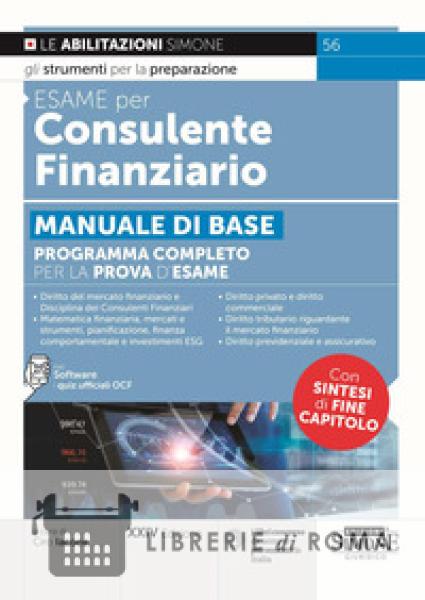 La figura del Consulente Finanziario è un punto di riferimento per chi, cercando soluzioni in linea con le proprie esigenze, intenda pianificare al meglio l'impiego dei suoi risparmi. Il Consulente Finanziario è tenuto, infatti, a fornire la sua assistenza in ogni fase del rapporto, valutando, ad esempio, la propensione al rischio del cliente e, una volta effettuato l'investimento, monitorando con lui le performance dello stesso e le possibilità di conseguire gli obiettivi prestabiliti. È evidente, quindi, che, per accedere alla professione, i requisiti necessari per l'iscrizione nell'apposito albo unico siano accertati dall'OCF (l'Organismo di vigilanza e tenuta dell'albo) sulla base di rigorosi criteri che tengono conto della pregressa esperienza professionale (documentabile) o di una prova valutativa per superare la quale e richiesto uno studio attento e scrupoloso. Questo manuale, concepito espressamente per chi dovrà sostenere la prova valutativa, affronta in maniera esauriente le materie richieste dal bando d'esame. Alla fine di ogni capitolo sono presenti: - un breve test di verifica, con quiz a risposta aperta; - le sintesi degli argomenti trattati, novità di questa edizione, che offrono un quadro riepilogativo e rappresentano un prezioso supporto per verificare la preparazione raggiunta. A corredo del testo, accessibile tramite il Qr-Code posto in calce al libro, si fornisce il software di simulazione della prova valutativa con i quiz ufficiali OCF.