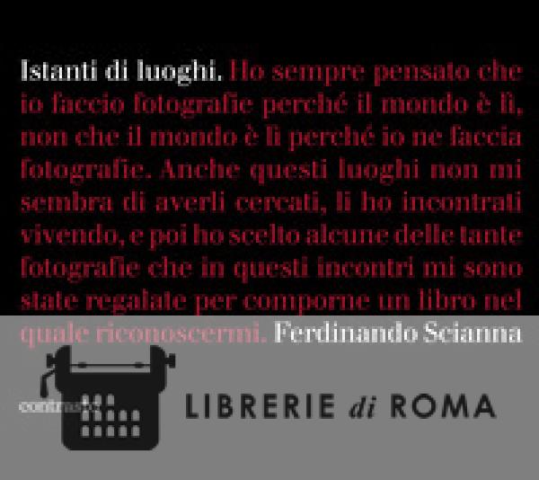 "Istanti di luoghi" di Ferdinando Scianna presenta un'ampia selezione di fotografie di paesaggio del fotografo membro di Magnum Photos. A differenza dei suoi precedenti libri, pubblicati per la collana In Parole di Contrasto, Istanti di luoghi è una narrazione il cui racconto è affidato alle sole immagini Ferdinando Scianna non si è mai considerato un paesaggista, né un ritrattista, un fotografo di moda o un fotogiornalista puro, nonostante dal 1982 sia membro della leggendaria agenzia fotografica Magnum Photos. Meno che mai si considera un fotografo artista. "Istanti di luoghi" nasce come un tentativo di sintesi dei diversi approcci alla fotografia nella sua carriera, in particolare quella di paesaggio. La Sicilia, la Calabria, la Puglia ma anche Napoli e la Val Padana, molte sono le fotografie realizzate in Italia che accompagnano, pagina dopo pagina, istantanee da tutto il mondo: Costa D'Avorio, San Pietroburgo, Barcellona, Rio De Janeiro e Parigi. "Istanti di luoghi" è una panoramica dal mondo visto da Ferdinando Scianna che per mezzo secolo ha usato l'obiettivo per guardarlo, incontrarlo e tentare di raccontarlo. "Nella mia vita ho incrociato uomini, storie, luoghi, animali, bellezze, dolori, che mi hanno suscitato, come persona e come fotografo, emozioni, pensieri, reazioni formali che mi hanno imposto di fotografarli, di conservarne una traccia. Ho sempre pensato io faccio fotografie perché il mondo è lì, non che il mondo è lì perché io ne faccia fotografie. Anche questi luoghi non mi sembra di averli cercati, li ho incontrati vivendo, e poi ho scelto alcune delle tante fotografie che in questi incontri mi sono state regalate per comporne un libro nel quale riconoscermi." (Ferdinando Scianna)