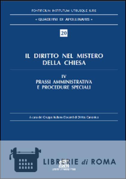 "Il diritto nel mistero della Chiesa" si arricchisce di un nuovo volume. Curato dal Gruppo italiano docenti di diritto canonico, "[...] descrive e commenta tutte le azioni offerte dal diritto canonico per risolvere conflitti, dichiarare fatti giuridici e prendere decisioni nel campo del diritto matrimoniale, amministrativo e penale, così come in casi più specifici che attengono direttamente all'attività della Chiesa [...]. L'opera costituisce un compendio di procedimenti giudiziari e amministrativi, speciali in ragione del loro oggetto, che contribuisce a radicare l'idea che il diritto canonico, nella sua lunga tradizione, ha elaborato dei mezzi per garantire la 'certezza giuridica' delle decisioni di governo. [...] La materia trattata in quest'opera riguarda direttamente o indirettamente il diritto amministrativo, categoria che i canonisti cercano di costruire soprattutto dopo il Concilio Vaticano II." (Dalla presentazione di P. Valdrini)