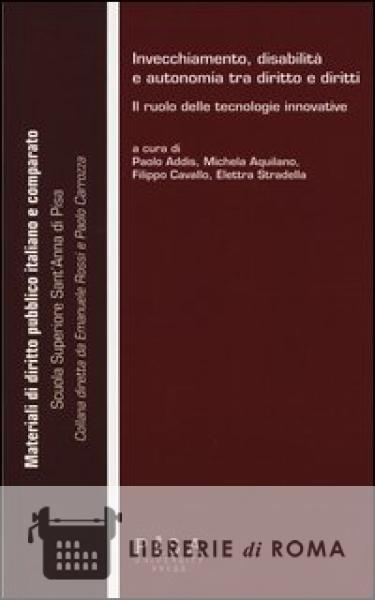 Il presente volume è il quinto della collana "Materiali di diritto pubblico italiano e comparato", diretta dai professori Emanuele Rossi e Paolo Carrozza della Scuola Superiore Sant'Anna di Pisa. Tale collana intende offrire uno strumento tanto per la raccolta di contributi con precipua finalità didattica quanto per la divulgazione dei risultati di attività di ricerca svolte o organizzate presso la Scuola Superiore Sant'Anna su argomenti di interesse costituzionalistico. "Invecchiamento, disabilità e autonomia tra diritto e diritti" raccoglie i risultati del relativo progetto, finanziato dalla Fondazione Cassa di risparmio di Livorno, coordinato da Emanuele Rossi, e di alcune tra le attività svolte nell'ambito del progetto RITA, finanziato dalla Regione Toscana sul Fondo Sociale Europeo. Tali progetti rappresentano il frutto di una proficua collaborazione scientifica tra l'Istituto Dirpolis e l'Istituto di Biorobotica della Scuola Sant'Anna, tra giuristi e ingegneri, in una prospettiva interdisciplinare indispensabile per offrire un primo, pur molto parziale, approccio alle importanti questioni poste nei vari contributi del volume: invecchiamento e diritti, promozione della autonomia delle persone anziane e disabili attraverso le sfide poste dal progresso tecnologico, sostenibilità dei modelli assistenziali esistenti, ruolo del terzo settore e del volontariato in particolare.