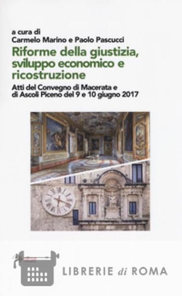 In questo volume compaiono le relazioni e i principali interventi presentati al Convegno giuridico su "Riforme della giustizia, sviluppo economico e ricostruzione", svoltosi il 9 e 10 giugno 2017 a Macerata e ad Ascoli Piceno e organizzato dalla Corte di Appello di Ancona e dal TAR Marche, con la collaborazione dell'Università degli Studi di Urbino Carlo Bo, dell'Università degli Studi Politecnica delle Marche, dell'Università degli Studi di Macerata, dell'Università degli Studi di Camerino e della Regione Marche. I vari contributi illustrano ed analizzano, da un lato, i vari interventi con cui negli ultimi anni si è tentato di migliorare l'efficienza organizzativa del "sistema giudiziario", anche al fine di incidere positivamente sullo sviluppo economico e, da un altro lato, le possibili ricadute sull'attività giudiziaria degli eventi sismici che hanno recentemente colpito il Centro Italia e, in particolare, le Marche.