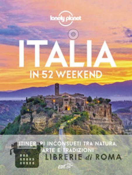 Dai borghi Walser del Monte Rosa alle lagune incontaminate della costa adriatica. Dalle delizie sul delta del Po alla Sicilia del cinema. Dagli eremi appenninici al paradiso della felicità sull'isola di Procida. Un viaggio in Italia in 52 itinerari: 52 idee che ti porteranno nei luoghi meno conosciuti di ogni regione italiana ogni settimana dell'anno. Questo libro fa per te se: sei alla ricerca di un'Italia meno conosciuta anche se a due passi da casa (o dalla spiaggia); vuoi conoscere le regioni come chi ci abita e condividere le loro usanze, cerchi itinerari 'a chilometraggio limitato' adatti alle famiglie e a chi ama viaggiare con lentezza; sei sempre a caccia di arte e delle radici storiche in ogni paesaggio e ami i piccoli musei civici, chiesette dimenticate, borghi murati ancora intatti; hai bisogno di una lista di proposte per ogni stagione: dalle sagre di cucina marinara alla degustazione del vino novello; ami i cammini nel verde, le esplorazioni sulle due ruote, e ti piace spostarti in barca e in treno. Itinerari in tutte le regioni italiane.
