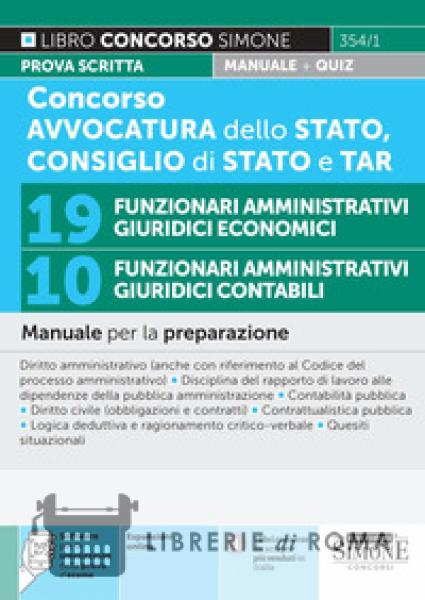 Librerie di Roma | Concorso Avvocatura dello Stato, Consiglio di Stato e TAR. 19 funzionari amministrativi giuridici economici. 10 funzionari amministrativi giuridici contabili. Manuale per la prepar