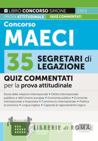 Il manuale Concorso MAECI 35 per Segretari di Legazione con Quiz Commentati è diretto alla preparazione della prova attitudinale della selezione indetta dal Ministero degli Affari Esteri e Cooperazione Internazionale. Tale prova, prevista dalla procedura concorsuale, consiste in quiz a risposta multipla riguardanti: Storia delle relazioni internazionali; Diritto internazionale pubblico e dell'Unione europea; Economia politica; Economia internazionale e finanziaria; Commercio internazionale; Politica economica; Lingua inglese; Test per l'accertamento della Capacità di ragionamento logico. Il presente manuale per il concorso 35 segretari di legazione al MAECI contiene quiz commentati su tutte le suddette materie e, inoltre, dedica un'intera parte all'esplicazione di quesiti ufficiali.