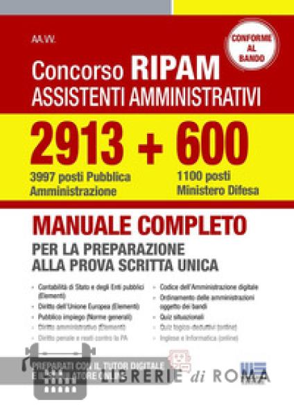 Librerie di Roma | Concorso RIPAM assistenti amministrativi 2913 (3997 posti Pubblica Amministrazione) + 600 (1100 posti Ministero Difesa). Manuale completo per la preparazione alla prova scritta uni