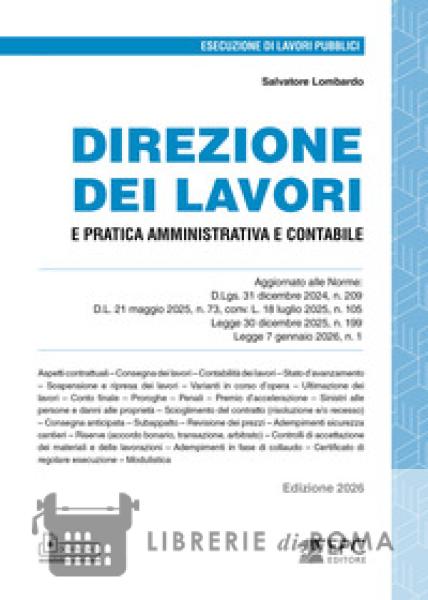 Librerie di Roma | Direzione dei lavori e pratica amministrativa e contabile. Aggiornato alle Norme: D.Lgs. 31 dicembre 2024, n. 209, D.L. 21 maggio 2025, n. 73, conv. L. 18 luglio 2025, n. 105, Legg