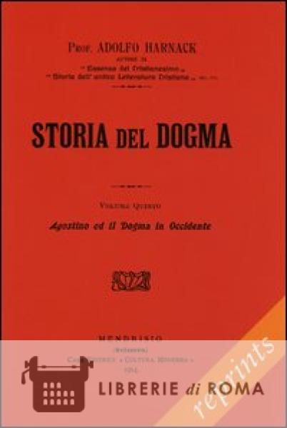 Nell'ottica di Harnack il dogma è considerato dalla prospettiva dell'incontro della predicazione cristiana con la cultura ellenistica, e la sua storia come storia della concettualizzazione e della sostanziazione metafisica della figura di Gesù. Scritto di portata rivoluzionaria, la Storia di Harnack è la messa in discussione della legittimità di un cristianesimo fondato sui dogmi. Quest'opera - per dirla con Yves Congar - è il risultato felice del concorso di una serie di doni eccezionali: potenza di lavoro, chiarezza di vedute, unione di erudizione del dettaglio e di visione d'insieme, sensibilità per gli sviluppi e le differenze, e tutte queste capacità unite a uno stile brillante e alle qualità del conferenziere. Il volume quinto ha al centro la figura di Agostino. A una lunga parte dedicata al cristianesimo in Occidente anteriormente ad Agostino, fa seguito il corpo del volume, dove si ricostruiscono l'opera riformatrice di Agostino e le vicende che condussero a farne un dottore della chiesa. Due ultimi capitoli espongono la storia del dogma in Occidente fino al principio del medioevo e nella rinascita carolingia.