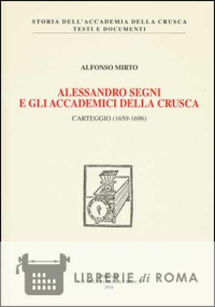 Sono qui pubblicate e commentate oltre 600 missive (individuate in vari archivi soprattutto fiorentini, pubblici e privati, e in gran parte finora sconosciute) di e a Alessandro Segni (1633-1697), relative alle sue attività nell'Accademia della Crusca e alle sue relazioni con accademici: da Leopoldo de' Medici a Carlo Dati, da Francesco Redi a Vincenzo Viviani. Il carteggio, che fornisce, da un punto di vista assolutamente inedito, informazioni sulla vita culturale fiorentina del XVII secolo, è inquadrato attraverso distinte fasi biografiche del protagonista: il viaggio in Francia, Paesi Bassi e nell'area di lingua tedesca in compagnia del marchese Francesco Riccardi (1665-1667); i trasferimenti tra Firenze, Roma e Londra (1668-1670); l'attività prima come vice e poi come segretario dell'Accademia della Crusca (1676-1696). In particolare, le lettere del terzo periodo illustrano con ricchezza la difficile e articolata preparazione del Vocabolario degli Accademici della Crusca nella sua terza "impressione" (1691).