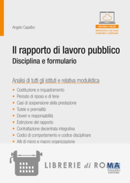 Il volume tratta il percorso normativo che ha interessato la disciplina del rapporto di lavoro alle dipendenze delle pubbliche amministrazioni. Il processo riformatore ebbe inizio con la legge n. 421 del 1992, quale strumento di rimedio per uscire dalla crisi economica e nel corso degli anni la regolazione del rapporto di lavoro è stata oggetto di numerose rivisitazioni. In particolare, con la riforma Brunetta del 2009, si interviene su alcune criticità per accrescere efficienza e trasparenza, razionalizzare il costo del lavoro pubblico e realizzare una migliore utilizzazione delle risorse umane all'interno di esse. Successivamente, con la legge Madia del 2015, la contrattazione collettiva assume valenza centrale nella regolazione dei rapporti di lavoro del pubblico impiego. Prova ne è l'art. 23, comma 1 del d.lgs. n. 75/2017. L'opera contiene la descrizione dei principali atti di regolazione del rapporto di lavoro pubblico, in particolare negli enti locali, che vanno dalla costituzione del rapporto, all'inquadramento ed ogni altro aspetto gestionale fino ai doveri e responsabilità del dipendente pubblico ed infine alla fase conclusiva del rapporto con la sua estinzione. Contiene, inoltre, un vasto formulario di atti di macro e micro organizzazione e di istituti contrattuali, riformulati con il nuovo CCNL, che ha introdotto elementi di semplificazione nella gestione dei fondi destinati alla contrattazione integrativa. Angelo Capalbo Segretario generale, avvocato, valutatore e pubblicista Segnalazioni bibliografiche > Il Codice degli Enti Locali, Riccardo Carpino > La disciplina delle assenze negli Enti locali dopo il CCNL Funzioni Locali. Guida rapida con casi pratici, Livio Boiero MATERIALI ONLINE Il lettore, tramite il codice alfanumerico allegato al volume, potrà accedere a fac-simili di atti e file excel di calcolo personalizzabili e stampabili. Modelli EXCEL su: > Pesatura posizioni organizzative > Pesatura obiettivi > Risultati ottenuti > Costituzione fondo risorse decentrate