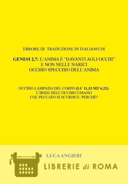 Librerie di Roma | Errore di traduzione in italiano di Genesi 2,7: l'anima è «davanti agli occhi» e non nelle narici. Occhio specchio dell'anima. Occhio lampada del corpo (Lc 11,33 Mt 6,22): l'iride