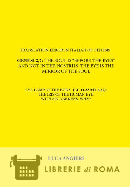 Librerie di Roma | Translation error in Italian of Genesis 2,7: the soul is «before the eyes» and not in the nostrils. The eye is the mirror of the soul. Eye lamp of the body (LC 11,33 MT 6,22): the