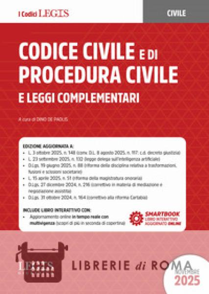 Il Codice è suddiviso in quattro parti rispettivamente dedicate alla disciplina normativa fondamentale nazionale e sovranazionale, al Codice civile, al Codice di procedura civile e alle leggi civili complementari. Gli articoli del Codice civile e di procedura civile sono corredati da note in multivigenza risalenti agli anni più recenti per comprenderne meglio la loro evoluzione storica. Chiudono il volume l'indice cronologico, l'indice analitico del Codice civile e del Codice di procedura civile. Questa edizione è aggiornata alle più recenti novità normative, tra cui ricordiamo: la L. 3 ottobre 2025, n. 148 (conv. D.L. 8 agosto 2025, n. 117: c.d. decreto giustizia), la L. 23 settembre 2025, n. 132 (legge delega sull'intelligenza artificiale), il D.Lgs. 19 giugno 2025, n. 88 (riforma della disciplina relativa a trasformazioni, fusioni e scissioni societarie), la L. 15 aprile 2025, n. 51 (riforma della magistratura onoraria), il D.Lgs. 27 dicembre 2024, n. 216 (correttivo in materia di mediazione e negoziazione assistita), il D.Lgs. 31 ottobre 2024, n. 164 (correttivo alla riforma Cartabia).