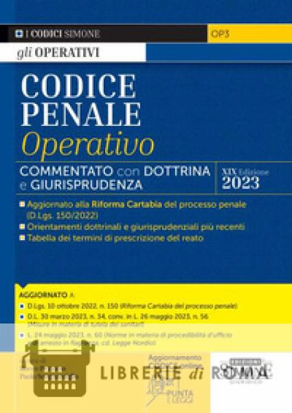 Questa XIX edizione del Codice Penale Operativo viene data alle stampe all'indomani della Riforma Cartabia del processo penale (D.Lgs. 10-10-2022, n. 150), per rispondere alle esigenze di quanti operano in ambito penalistico (Forze dell'ordine, Avvocati, Magistrati, Operatori del diritto). Sul piano del diritto sostanziale, la riforma, tra le altre cose, ha riscritto il sistema delle pene sostitutive delle pene detentive brevi disciplinate dalla legge 689/1981, ha modificato le norme codicistiche che regolano la determinazione e il pagamento delle pene pecuniarie, nonché la loro eventuale conversione, e ha esteso le ipotesi di procedibilità a querela dei reati. Su tale assetto disciplinare ha successivamente inciso la L. 24-5-2023, n. 60, nota come "Legge Nordio", che ha reintrodotto la procedibilità d'ufficio in alcune ipotesi previste dalla legge. Come è consuetudine per i «Codici Operativi», anche questo Codice Penale Operativo riporta in calce a ciascun articolo i più rilevanti indirizzi interpretativi della Corte di cassazione e della Corte costituzionale, nonché gli orientamenti della dottrina sulle questioni più controverse. Completa l'opera una Tabella dei termini di prescrizione del reato, concernente i reati di fonte codicistica, e ordinata per "famiglie di reato", allo scopo di visualizzare, in modo immediato, i tempi della relativa decorrenza. Punto di forza, infine, resta l'articolato indice analitico-alfabetico, che facilita l'opera di ricerca del dato normativo e delle connesse questioni interpretative, dottrinali e giurisprudenziali.