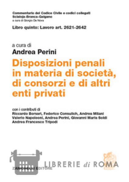 Librerie di Roma | Libro quinto: Lavoro Art. 2621-2642. Disposizioni penali in materia di società, di consorzi e di altri enti privati