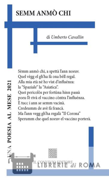 "Sèmm anmò chi, a spettà l'ann noeuv. / Quel vègg el gh'ha fà ona bèll regal. / Alla mia età né ho vìst d'influénza: / la "Spaziale" la "Asiatica". / Quei pericolòs per fortùna hinn passà / poeu l'è rivà el vaccino còntra l'influénza. / È tucc i ann se semm vacinà. / Credeumm de avè fà francà. / Ma l'ann vegg gh'ha regalà "Il Corona" / Sperumm che quel noeuv el vaccino porterà."