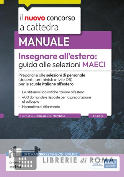 Manuale per la preparazione alle selezioni di personale indette dal MAECI - Ministero degli Affari Esteri e della Cooperazione Internazionale per le scuole italiane all'estero. Dopo una panoramica sulle istituzioni scolastiche italiane all'estero, il testo delinea il profilo ed il ruolo dell'insegnante italiano all'estero e i requisiti e i titoli richiesti. Sono poi fornite utilissime indicazioni per la preparazione al colloquio, con circa 400 domande e risposte. Chiude il volume, una breve appendice con norme di non sempre facile reperimento.