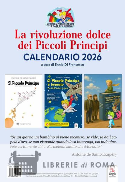 In queste pagine che vi accompagneranno per i mesi de 2026, il Piccolo Principe torna per portare sulla terra la Pace. Così scrive nelle prime pagine Giancarlo Biasini, 94 anni, Presidente emerito dell'Associazione Culturale Pediatri, fondatore del progetto per bambini Nati per leggere: "Il Piccolo Principe, il classico libro per ragazzi di Antoine de Saint-Exupéry che milioni di genitori hanno letto ai loro bambini, terminava lasciando aperta la possibilità di avere un seguito. Quasi un secolo più tardi, Ennio Di Francesco esaudisce il desiderio espresso dall'autore francese. Il Piccolo Principe, vedendo quel che succede sulla terra, torna per incontrare di nuovo il pilota Antoine, e consegnargli in dono il "Noodio", con dentro la lacrima di tutte le mamme del mondo, la corolla della sua rosa e l'albero della pace. I testi sono semplici e gradevoli, pieni di ispirazione, adatti ad essere letti sia dai bambini, sia dagli adolescenti."