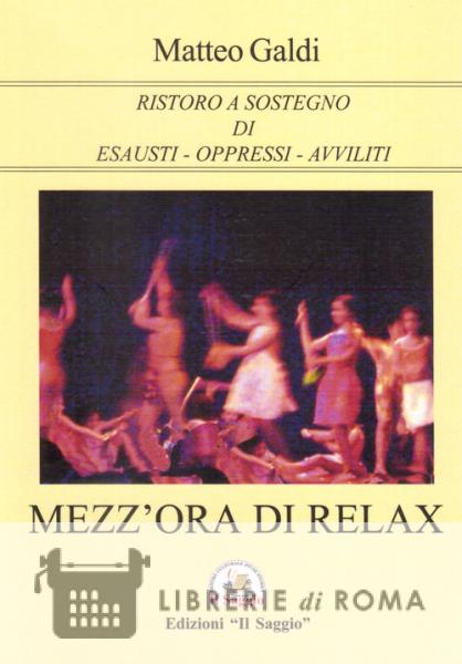«Cosa posso dire a un autore quale Matteo Galdi il quale con i suoi scritti mette il lettore a pensare. Questo lavoro non è un libro che dopo averlo letto hai acquisito la storia di qualcosa. Questo è un libro composto da pensieri, aforismi, metafore e altro. Ognuna di queste chicche dopo averla letta devi soffermarti e assimilarla. Non puoi sorvolare. Questo piccolo libretto è composto da 127 elementi diversi e il lettore ha ben 127 possibilità di soffermarsi. Il titolo: "Mezz'ora di relax" è giusto ... ma solo se si legge d'un fiato... ma poi bisogna tornare indietro e rileggere per capirne l'essenza. Alcune metafore, o aforismi, sembrano banali ma non lo sono affatto, anche le più semplici espressioni: "Le gemelle più fedeli tra loro sono le mani. Una aiuta sempre l'altra". Su questa espressione quante cose si potrebbero dire? Si potrebbe addirittura scrivere un trattato sull'amicizia, sulla fiducia verso l'altro... e volendo sui gemelli stessi o addirittura proprio sulle mani. Quello che riporto di seguito potrebbe essere un proverbio che ha coniato l'Autore Matteo Galdi: "Colui che per dispetto altrui denigrisce è un porcospino fino a che finisce". Tutti sappiamo che dietro un proverbio c'è un'esperienza di vita e molte volte, nel coniare un proverbio, ci sono esperienze di una moltitudine di persone. Matteo Galdi non è nuovo di queste cose ma nello stesso tempo, la sua esperienza da nuove sensazioni e nuove lezioni di vita in base a ciò che ha scritto anche perché non è una persona egocentrica ma una persona che ha dato molto alle giovani leve specie nel mondo dello sport, nel mondo del teatro e nel mondo della cultura in generale Ogni qualvolta Matteo si sofferma a dialogare con qualcuno dona a ognuno un po' della sua ricchezza del suo sapere.» Giuseppe Barra