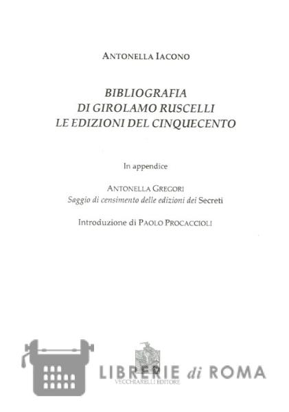 Bibliografia di Girolamo Ruscelli. Le edizioni del Cinquecento. In appendice Antonella Gregori, saggio di censimento delle edizioni dei secreti