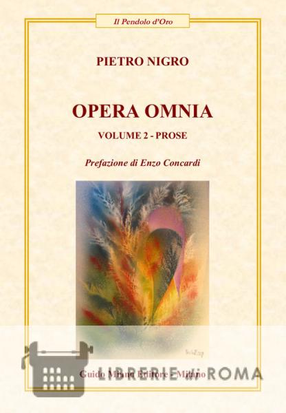 «Questo secondo volume dell'Opera Omnia dello scrittore e poeta siciliano Pietro Nigro, riguardante il meglio delle sue opere in prosa, segue di poco tempo la pubblicazione del primo volume dedicato alla poesia, genere nel quale egli ha conseguito, a detta unanime della critica letteraria, esiti di valore estetico e contenutistico non indifferenti. Il lettore che s'affaccia con curiosità a navigare tra le pagine di Nigro, potrà senz'altro riscontrare l'ecletticità dei suoi interessi culturali, che spaziano in vari campi del sapere non solo strettamente letterario. I suoi scritti sono suddivisi in cinque capitoli: Pagine memoriali, d'arte e di letteratura; Narrativa e pensieri, Opera teatrali, Critica letteraria, Numismatica dell'impero romano» (dalla prefazione di Enzo Concardi).