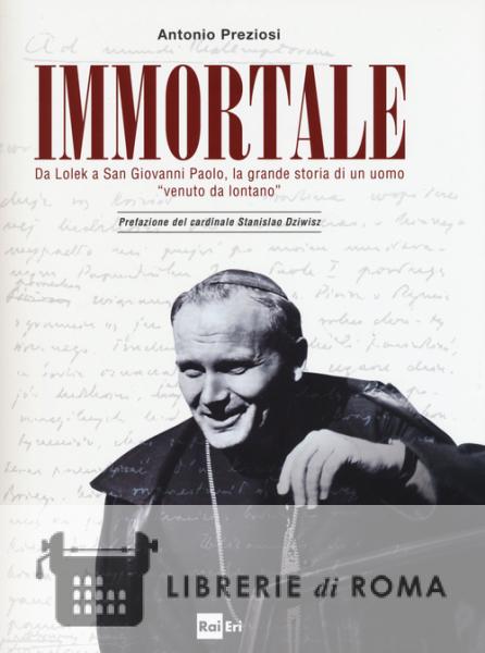 "Il titolo del libro di Antonio Preziosi è certamente molto forte. Ma è anche un titolo che oggi più che mai, a dieci anni dalla morte di san Giovanni Paolo II, ci appare coerente e veritiero. Nessuno si è dimenticato di lui mentre è incredibile il numero di persone che chiedono di sapere di più della sua straordinaria vita, delle sue opere, del suo pensiero. Lui appare veramente 'immortale' agli occhi di chi lo ha conosciuto ed anche a quelli di chi si avvicina a lui per la prima volta: viene percepito come vivo, vicino alla gente, vicino soprattutto ai suoi amati giovani. E lui è veramente ancora con noi e dall'alto del cielo, come racconta Preziosi nel suo volume, continua a pregare per l'umanità come ha fatto in ogni istante della sua vita. Mentre aumentano coloro che continuano a cercarlo, io stesso sono testimone delle continue richieste di preghiere che nel suo nome vengono rivolte a Dio e tante di queste vengono accolte: guarigioni, conversioni, segni di grazia continua e permanente. A lui si rivolgono molte coppie che chiedono di avere figli ricordando il suo grande amore per la famiglia. La sua morte fisica non ha interrotto quei prodigi e quella preghiera che ho sperimentato quotidianamente durante la sua vita terrena." (Dalla prefazione del cardinale Stanislao Dziwisz)