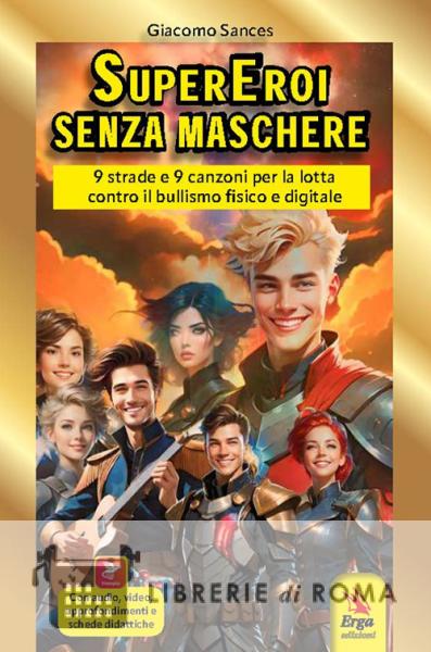 "Supereroi senza maschere. 9 strade e 9 canzoni" contro il bullismo è una storia di relazioni tra i banchi di scuola in versione Super Hero, ma è anche un racconto di formazione. Ale, un giovane studente con ADHD e alto potenziale cognitivo vive male la scuola. I professori non lo capiscono ed è anche preso di mira dai compagni che lo vedono imprigionato nel mondo fantastico della sua fantasia. Una sera, però, Ale ascolta nove canzoni che un certo "Prof con la chitarra" ha dedicato ai suoi alunni. Ciascuno di quei brani gli risuona dentro e scandisce la storia dei suoi progressi e delle sue relazioni che vanno via via migliorando e lo portano a diventare, non senza cadute e ostacoli da superare al fianco di nuovi amici, un paladino della lotta al bullismo. Un supereroe che, con il coraggio di metterci la faccia, decide di non indossare alcuna maschera. Sulla scia delle esperienze quotidiane e delle canzoni che lo ispirano, nelle sue pagine Ale parla di partecipazione sociale, legalità e omertà; orientamento; lavoro autonomo e di squadra; dipendenza da social, fake news e AI; metodi di contrasto al bullismo; relazione con gli altri; superamento dei momenti negativi; dominio delle emozioni e autostima. Supereroi senza maschere è un libro per tutti, ma comunica in modo particolare a docenti e studenti. Non a caso il libro è corredato da un apparato didattico che, oltre ad essere fruibile attraverso scansioni dei QR code con la App Vesepia, può essere condiviso anche in classe attraverso la LIM. Oltre alle audio-letture dei capitoli e alle nove canzoni, il libro è impreziosito da approfondimenti come schede didattiche e materiali di informazione e contrasto al bullismo. Contenuti multimediali e novità tecnologiche attivabili sullo smartphone attraverso l'App Vesepia o in classe attraverso la LIM: Tutte le audio letture dei capitoli (inclusivo per DSA, alunni ciechi o ipovedenti). Le nove canzoni del "Prof con la chitarra" con i testi. Accordi delle canzoni con i testi. Schede didattiche divise in comprensione del testo, grammatica e laboratorio emozionale. Le illustrazioni del libro in formato png o jpg. Tematiche di stampo didattico: Bullismo; partecipazione sociale; legalità; omertà; orientamento; lavoro autonomo e di squadra; dipendenza da social; fake news e intelligenza artificiale; metodi di contrasto al bullismo; amicizia; relazione con gli altri; empatia; inclusione; attenzione alle diversità; superamento dei momenti negativi; dominio delle emozioni e autostima. Età di lettura: da 6 anni.