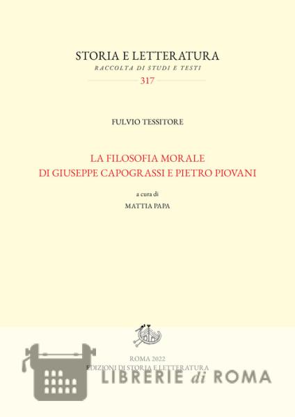 In questa raccolta di scritti, Fulvio Tessitore traccia i profili umani e scientifici di Giuseppe Capograssi e Pietro Piovani e della scuola napoletana ad essi collegata, misurandosi con la filosofia morale di due 'maestri', le cui suggestioni pervadono i suoi stessi studi. «Il volume è composto da due parti, la prima su Capograssi (...), la seconda su Piovani (...). Le due sezioni seguono non solo l'ordine di discepolanza (Capograssi-Piovani-Tessitore) ma coincidono anche con l'ordine cronologico su cui si è focalizzata l'attenzione di Tessitore sui due maestri (...). Si vuole dare un significato ulteriore ai saggi qui introdotti contestualizzandoli nell'esperienza esistenziale, e perciò intellettuale, di Tessitore. Si vuole cioè presentare i suoi saggi piovaniani e capograssiani in forza della dimensione storicamente determinata e personale in cui vennero pensati ed elaborati, dimensione che potrebbe sfuggire trattando i due maestri solo come 'figure', come interlocutori attraverso cui Tessitore ha aggiunto tasselli alla sua ricerca. Piovani e Capograssi rappresentano invece le radici, tanto teoriche quanto etiche, del vissuto intellettuale tessitoriano» (dall'Introduzione di Mattia Papa).