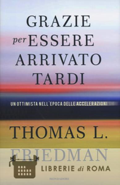 Il mondo sta cambiando. E sta cambiando a una velocità mai sperimentata prima. Tecnologia, globalizzazione e cambiamenti climatici sono forze in costante accelerazione, che rischiano di travolgere la civiltà contemporanea. In un'epoca del genere, moltissimi aspetti delle nostre società devono essere completamente ripensati, e l'errore più grande che potremmo fare è scegliere di isolarci in preda al panico. Thomas Friedman, saggista e editorialista del «New York Times», propone piuttosto di fermarsi un istante a riflettere, per comprendere meglio il mondo che ci circonda. E "Grazie per essere arrivato tardi" è la sua personale pausa. Facendo di necessità virtù, e approfittando dei ritardi altrui, Friedman scende dall'ottovolante della propria vita frenetica e analizza con ordine i fatti che ci hanno condotti al punto in cui siamo. A cominciare da una domanda: «Cosa diavolo è successo nel 2007?». Nel 2007 Steve Jobs presentò il primo iPhone, Hadoop rese i Big Data accessibili a tutti, Facebook si aprì al mondo, Twit-ter cominciò a diffondersi a livello globale, Airbnb fu concepito da due ragazzi a corto di soldi, Google lanciò Android e Amazon la rivoluzione degli e-book. All'inizio degli anni Duemila il progresso tecnologico e scientifico ha subito un'accelerazione senza precedenti, dettando nuovi ritmi, nuove regole, nuove convenzioni sociali, raggiungendo una velocità tale da eccedere la normale capacità di adattamento degli esseri umani e della società. E questo mentre anche altre forze primarie richiedono l'attenzione e il coinvolgimento di tutti. La globalizzazione ci vuole inter e iperconnessi, flessibili e adattabili, e ci dà gli strumenti non solo per accettare un mondo del lavoro in continua evoluzione, ma anche per inventarne uno nuovo. Nel contempo, Madre Natura chiede di pagare pegno. Il cambiamento climatico è un dato di fatto: la desertificazione dell'Africa subsahariana e le migrazioni verso il Nord del pianeta delle popolazioni che fuggono dalla povertà ne sono la dimostrazione più tangibile. Friedman esamina con cognizione di causa le tre forze più potenti al mondo - la Supernova, il Mercato e Madre Natura - per cercare di capire i meccanismi che stanno alla base di questa Epoca delle Accelerazioni. E propone delle soluzioni. Da scrupoloso editorialista qual è, sa di dover smuovere la mente e il cuore dei propri lettori, in modo da spingerli non solo a riflettere, ma anche ad agire diversamente in futuro. Come lo stesso Friedman afferma, «questo libro è un gigantesco editoriale sulla realtà di oggi».