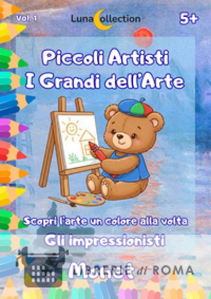 Benvenuti nel mondo luminoso e vibrante di Claude Monet, il maestro dei colori e della luce! Questo è il primo entusiasmante volume della nostra collana "Piccoli Artisti - I Grandi dell'Arte", firmata Luna Collection, dove i bambini si trasformeranno in veri pittori. Preparate pastelli, pennarelli e tanta fantasia: l'avventura artistica sta per iniziare! In questo libro, i piccoli artisti scopriranno 10 delle opere più famose e coinvolgenti di Monet, accuratamente selezionate per la loro bellezza e la facilità di trasformazione in disegni da colorare. Il formato è il nostro punto di forza! Su ogni doppia pagina, i bambini troveranno a sinistra l'opera originale di Monet a colori, un vero e proprio specchio dell'arte. A destra, invece, lo stesso quadro attenderà, trasformato in un disegno al tratto pronto per essere riempito di vita! I bambini potranno scegliere: copiare i colori del maestro per imparare le sfumature, oppure dare libero sfogo alla propria creatività, inventando combinazioni uniche e personali. Età di lettura: da 5 anni. In questo primo volume dedicato a Claude Monet, i bambini vengono accompagnati alla scoperta dell'Impressionismo attraverso un percorso semplice e coinvolgente, pensato per la fascia 5-8 anni. La figura di Monet viene presentata come un artista capace di osservare il mondo "en plein air", seguendo la luce e i cambiamenti della natura: giardini, ninfee, cieli, campi di fiori diventano così lo scenario ideale per sviluppare capacità di osservazione, sensibilità cromatica e creatività personale. Ogni doppia pagina propone, da un lato, la riproduzione a colori di un'opera selezionata, dall'altro la corrispondente illustrazione in bianco e nero da colorare. Il bambino è invitato a confrontare originale e reinterpretazione, sperimentando combinazioni di colori proprie, senza vincoli rigidi di copiatura. La narrazione, dal tono favolistico ma filologicamente corretto, introduce brevi informazioni su vita, ambiente e poetica dell'artista, rendendo accessibili concetti come luce, atmosfera e "impressione" visiva. Il volume può essere utilizzato in ambito familiare, scolastico o laboratoriale come strumento di educazione all'immagine: favorisce motricità fine, concentrazione, educazione estetica e primo orientamento nella storia dell'arte. Monet diventa così il punto di partenza di un percorso strutturato che, attraverso gli altri titoli della collana, offre agli operatori del settore una proposta continuativa di avvicinamento guidato ai grandi maestri. Questo volume dedicato a Monet è pensato come strumento operativo per contesti educativi della scuola dell'infanzia e primaria. Favorisce lo sviluppo della motricità fine e della coordinazione occhio?mano attraverso attività di coloritura guidata ma non imitativa; promuove l'osservazione attenta di luce, forme e colori, introducendo in modo intuitivo concetti base di educazione all'immagine e alla storia dell'arte. Il percorso stimola inoltre linguaggio, narrazione e pensiero simbolico: ogni opera diventa occasione per raccontare, interpretare, collegare emozioni e vissuti personali al paesaggio rappresentato, inserendosi efficacemente in progetti didattici interdisciplinari. Età di lettura: da 5 anni.