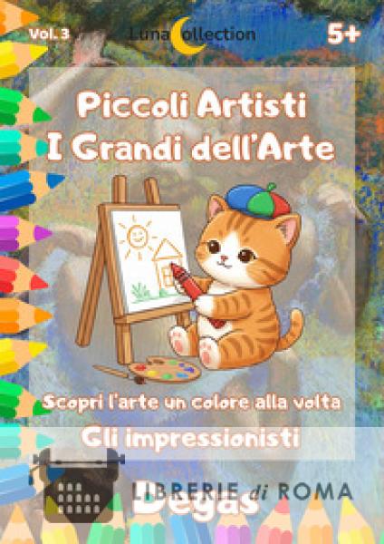 Benvenuti nel mondo elegante e in movimento di Edgar Degas, il pittore che amava immortalare ballerine e cavalli! Questo è il terzo entusiasmante volume della nostra collana "Piccoli Artisti - I Grandi dell'Arte", firmata Luna Collection, dove i bambini scopriranno la magia della danza e del movimento attraverso l'arte. Preparate pastelli, pennarelli e tanta grazia: l'arte è uno spettacolo! In questo libro, i piccoli artisti scopriranno 10 delle opere più famose e coinvolgenti di Degas, attentamente scelte per la loro bellezza e la semplicità delle forme in movimento da colorare. Il formato è il nostro punto di forza! Su ogni doppia pagina, i bambini troveranno a sinistra l'opera originale di Degas a colori, un vero e proprio invito all'osservazione. A destra, invece, lo stesso quadro attenderà, trasformato in un disegno al tratto pronto per essere riempito di vita! I piccoli artisti potranno scegliere: copiare i colori del maestro per imparare le sfumature, oppure dare libero sfogo alla propria creatività, inventando combinazioni uniche e personali. Età di lettura: da 5 anni. Il volume dedicato a Edgar Degas introduce i bambini nel mondo della danza, del teatro e del movimento, attraverso lo sguardo di uno dei protagonisti dell'Impressionismo. Una selezione di opere raffigura ballerine alla sbarra, durante le prove o in scena, ma anche cavalli, musicisti e momenti dietro le quinte, restituendo l'idea di un'arte fatta di grazia e insieme di impegno e concentrazione. Ogni doppia pagina presenta l'immagine a colori del dipinto e la relativa tavola da colorare, invitando i bambini a osservare posture, gesti e linee dei corpi, per poi reinterpretarli cromaticamente in modo personale. I brevi testi di accompagnamento, dal taglio narrativo ma rigoroso, spiegano chi era Degas, perché amava osservare la danza e come riusciva a "fermare" il movimento nei suoi quadri, stimolando nei piccoli lettori curiosità, attenzione al dettaglio e capacità di lettura dell'immagine. Il volume si presta a percorsi educativi su corpo, espressività e disciplina artistica: le scene di danza diventano spunto per lavorare su emozioni, autocontrollo, collaborazione e rispetto delle regole comuni, offrendo a scuole, biblioteche e laboratori un supporto efficace per progetti in cui arte visiva e movimento dialogano tra loro. Questo volume è pensato come strumento operativo per contesti educativi della scuola dell'infanzia e primaria. Favorisce lo sviluppo della motricità fine e della coordinazione occhio?mano attraverso attività di coloritura guidata ma non imitativa; promuove l'osservazione attenta di luce, forme e colori, introducendo in modo intuitivo concetti base di educazione all'immagine e alla storia dell'arte. Il percorso stimola inoltre linguaggio, narrazione e pensiero simbolico: ogni opera diventa occasione per raccontare, interpretare, collegare emozioni e vissuti personali al paesaggio rappresentato, inserendosi efficacemente in progetti didattici interdisciplinari. Età di lettura: da 5 anni.