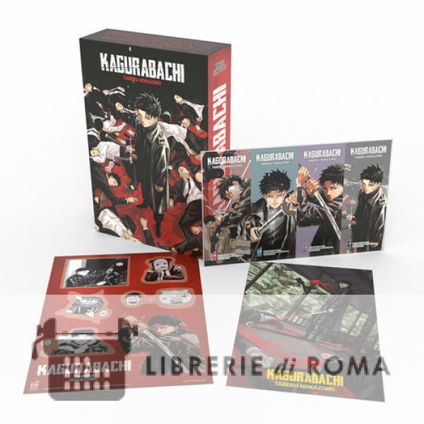 Chihiro passa le sue giornate nella fucina, addestrandosi sotto la guida di suo padre, per diventare un maestro spadaio come lui. Se il genitore ama gli scherzi e le facezie, il figlio invece è un tipo più taciturno. La felicità di quei momenti sembrerebbe poter continuare all'infinito... ma un brutto giorno la tragedia bussa alla loro porta. Un legame insanguinato e una vita che non tornerà più. Nel cuore del ragazzo adesso brucia solo la fiamma di una determinazione alimentata dall'odio... Azione, violenza e spettacolari combattimenti in una storia a cavallo fra il sovrannaturale e il noir! Il box contiene, oltre al volume, una Illustration Card, un set di Stickers e un set di Segnalibri in PVC, ed è progettato per contenere al suo interno le Variant Cover Edition dei volumi 1, 2 e 3 di KAGURABACHI.