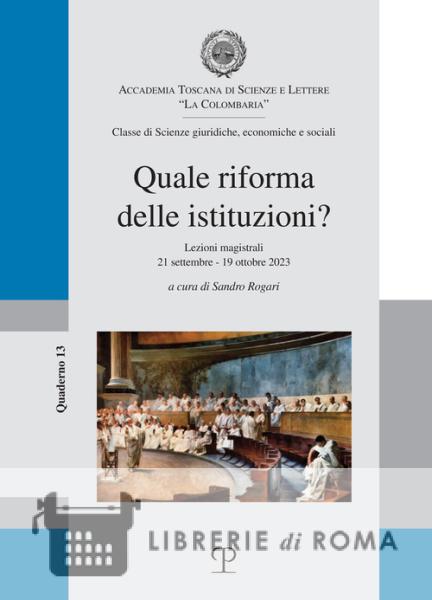 Nell'anno accademico 2023-2024, l'Accademia ha ritenuto che sul tema delle riforme istituzionali fosse opportuno aprire una discussione col coinvolgimento di soci e non soci in ragione della pregnanza e dell'attualità del tema. Abbiamo quindi raccolto sei lezioni magistrali tenute da massimi conoscitori delle questioni di pertinenza di ciascuno: di Enzo Cheli per la riforma dei poteri del governo; di Francesco Palazzo per la riforma della giustizia penale; di Stefano Grassi e di Alessandro Petretto per l'autonomia differenziata; di Roberto D'Alimonte per la riforma elettorale e di Enrico Spagnesi per il consolidarsi della tradizione parlamentare nell'Italia liberale e il suo fallimento con lo Statuto Albertino. Ne è emersa una messa a punto, equilibrata e di altissimo profilo, del complesso variegato di materie che si calano nel tema della riforma delle istituzioni, con evidenziazione di luci e di ombre sia di sostanza sia di metodo che, al di fuori di ogni schieramento ideologico, proponiamo al lettore. Auspichiamo che le lezioni raccolte allarghino e soprattutto concorrano a elevare il dibattito pubblico su questioni di alta rilevanza per il futuro del nostro paese.