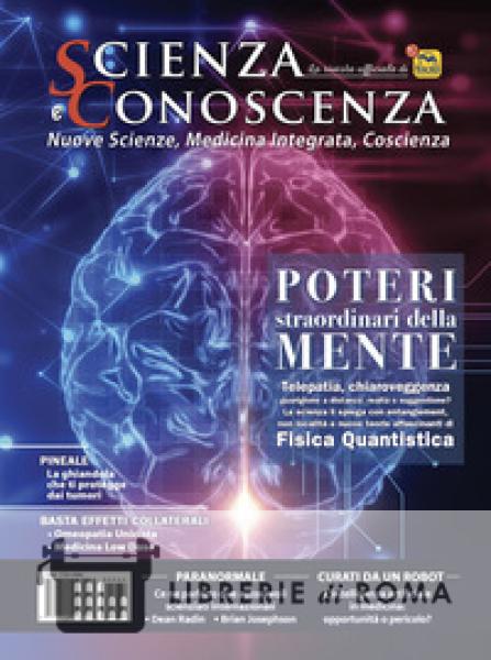 Chiaroveggenza, psicocinesi, telepatia: ognuno di noi ha una o più storie da raccontare relative alla percezione di accadimenti avvenuti in altri tempi e in altri luoghi, alla capacità di influenzare con la mente eventi fisici e alla comunicazione diretta da mente a mente. Pensiamo intensamente a una persona, squilla il telefono ed è lei. Ci focalizziamo su un'intenzione di guarigione per un caro parente malato e il sofferente percepisce un sollievo. Sogniamo un accadimento in maniera dettagliata e alcuni giorni dopo si verifica. Coincidenze? Semplice caso? Illusioni di una mente e una coscienza che credono che il cervello sia molto più di un semplice computer di carne, come alcuni neuroscienziati meccanicisti amano definirlo? Fenomeni come la chiaroveggenza, la preveggenza, la telepatia, la psicocinesi, la guarigione a distanza accompagnano l'uomo dall'alba della sua storia ai giorni nostri: ne troviamo traccia anche nelle grandi culture spirituali orientali, come i Siddhi della tradizione yogica. I fenomeni PSI sono stati a lungo relegati nella sfera del parapsicologico da baraccone: rifiutati dalla scienza anche solo come oggetto di studio, sono stati classificati come le fantasie di menti deboli e facilmente autosuggestionabili. Ma le cose stanno veramente così? Secondo alcuni scienziati, medici e ricercatori no. In questo numero di «Scienza e Conoscenza» andiamo alla scoperta dei poteri straordinari della mente e cerchiamo di capire cosa la scienza può dirci su questi fenomeni bizzarri: il loro attento e rigoroso studio può gettare una nuova luce sulla natura del cervello, della mente e della coscienza? Poteri straordinari della mente: Supernormale: i fenomeni PSI visti dalla scienza Intervista a Dean Radin a cura della Redazione. Guarigione a distanza e fisica quantistica Gioacchino Pagliaro. La Telepatia: fenomeno reale o suggestione? Luigi Maxmilian Caligiuri. Mente Sanscrita: apprendere una nuova lingua riplasma il cervello Antonio Morandi. Il potere della preghiera e dei luoghi sacri Carmen Di Muro. Cervello in salute: Ghiandola Pineale: l'effetto anticancro Paolo Giordo. Il Cervello Anarchico: medicina olistica, PNEI e fisica quantistica Intervista a Enzo Soresi a cura di Marianna Gualazzi. Salute e medicina non convenzionale: Medicina a basso dosaggio: la medicina che sussurra alle celluleIntervista a Max Corradi a cura della Redazione. Omeopatia unicista: il simile cura il simile Diego Tomassone. Ritrova la salute con l'Ayurveda Intervista a Maria Cristina Minniti a cura di Romina Alessandri. Si può crescere un bambino senza carne? Sabina Bietolini. Scienza: Curati da un robot: l'intelligenza artificiale in medicina Maurizio Di Paolo Emilio. La Fisica che rende bella la vita Intervista a Ignazio Licata a cura della Redazione. Arte e Fisica: dalla "Maestà" di Simone Martini alla fisica quantistica Davide Fiscaletti.